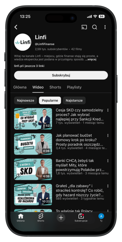 Kanał Linfi Finanse powstał od zera jako projekt oparty w 100% o query-based content i treści projektowane pod widoczność w AI.